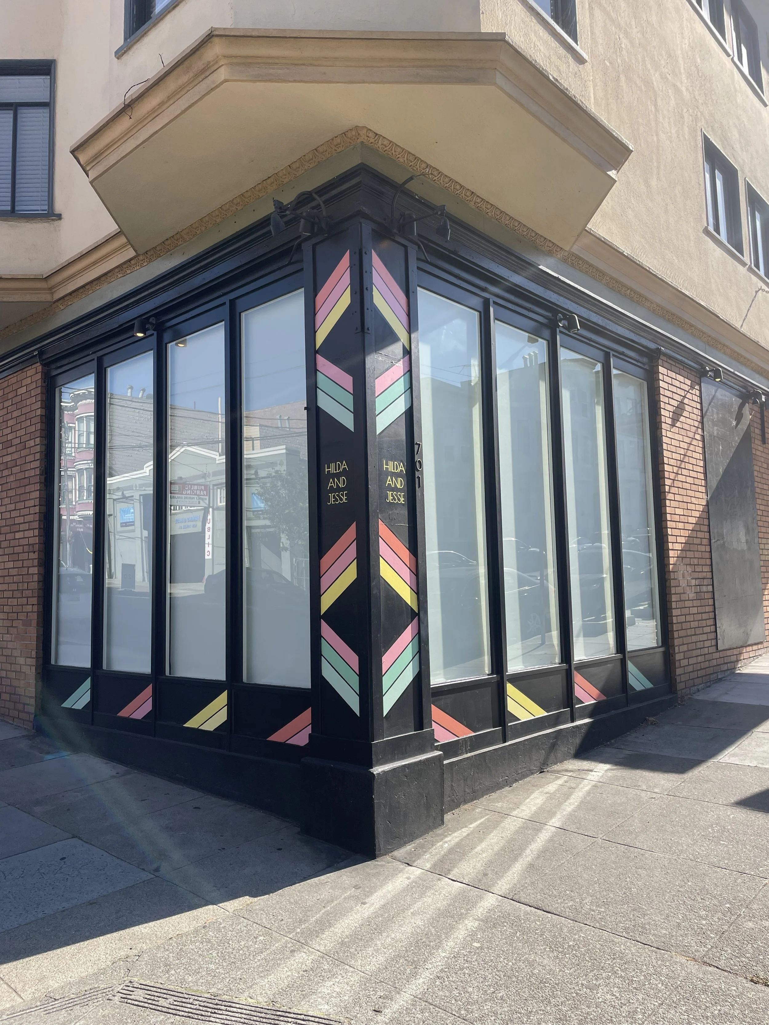 Notes: We were thrilled to upgrade the facade of Hilda and Jesse located in North Beach in San Francisco by giving it an eye-catching rainbow prism design inspired by their logo. It truly makes the corner POP! Go check out this beautiful restaurant designed by Noz Design. It is not to be missed!
